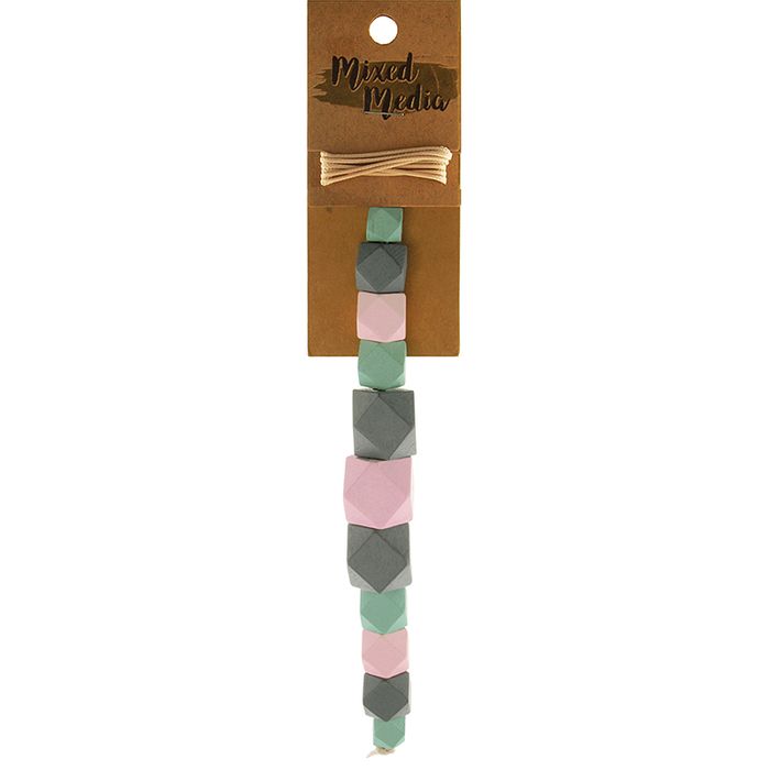 - Bead Wooden Geo Pink Mint Grey 11Pcs