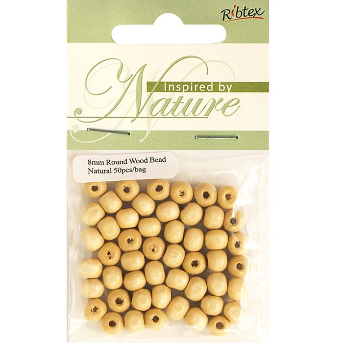 - Bead Wood Round 8Mm Natural 50Pcs