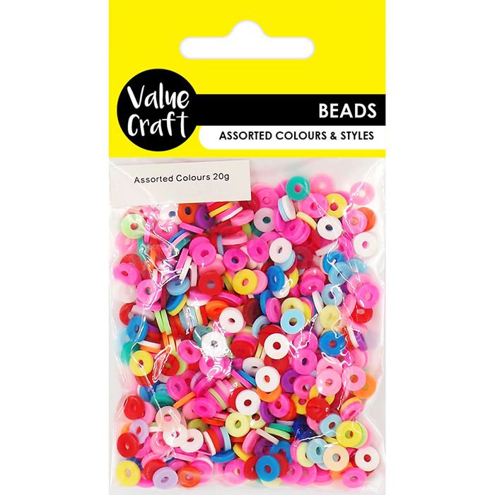 Value Craft Round fimo slice beads come in a multicoloured 20 gram pack. Add to your own jewellery, key chains, or hair accessories.