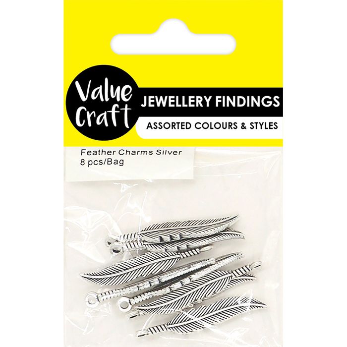 CHARM METAL SILVER FEATHER 30MM 8PCS