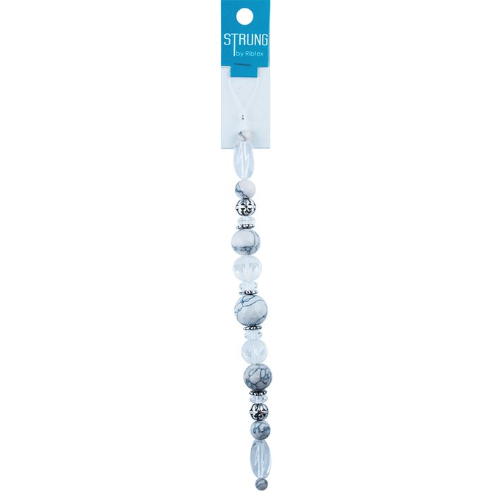 | Glass Rnd Facet Marble Feature 1X16mm Rnd Facet 2X12mm 2X8mm 2X6mm Rnd Marble 2X13mm Rnd Facet 2X15mm Rect Facet 2X10mm Rnd Slv 4X Flat Slv Spacers 4 X 9mm Saucers |