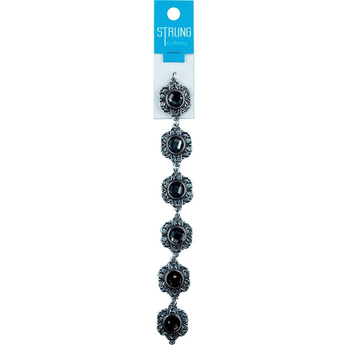 | 24mm Round Feature W Black R.Stone + Back Diamantes |