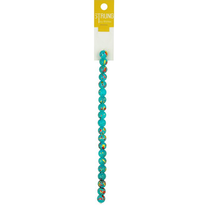 - Strung 10mm Glass Bead Blue Paint Splat