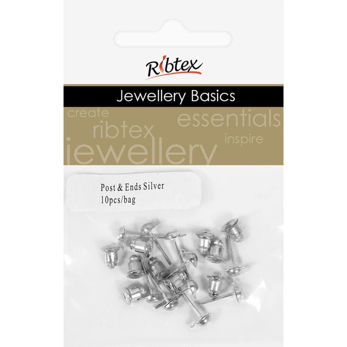 Earring Post And Ends 10mm Silver 10Sets